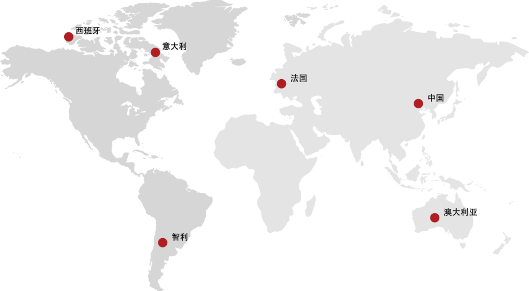 世界葡萄酒产区就像两条红丝带,分布在北纬30~52度、南纬15~42度之间,因为这里有最适宜的气候、阳光、土壤和湿度。在众多世界闻名的葡萄酒产区中,南山名酒荟的六大基地遍布法国、意大利、澳大利亚、智利、西班牙以及中国,接下来,让我们一起踏上旅程,寻找中意的葡萄酒吧!